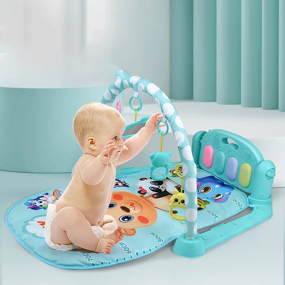 Alfombrilla de gimnasio 5 en 1: Nuestra alfombrilla de gimnasio para bebés está diseñada para desarrollar habilidades sensoriales y motoras basadas en el escenario, desde bebés recién nacidos hasta niños pequeños. Proporciona un montón de espacio dedicado para que el bebé gatee, camine, se pare y juegue felizmente, ahorrando más tiempo para los padres. Los juguetes colgantes pueden estimular la vista y el tacto del bebé, lo que permite que los bebés encuentren y exploren con el entorno de patrones de dibujos animados de animales oceánicos amigables.