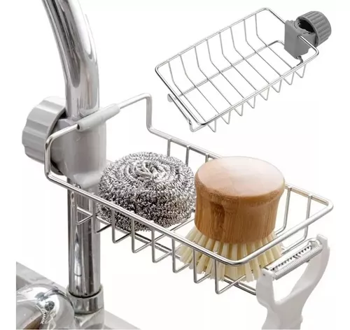 Características: el estante para grifos se puede montar en el grifo, ahorra espacio y mantiene el fregadero de la cocina ordenado y seco. A prueba de herrumbre y duradero. El estante para grifos está hecho de acero inoxidable 304 y material ABS ecológico, a prueba de herrumbre, resistente, duradero y fácil de limpiar. Práctico escurridor de fregadero de cocina, puede almacenar esponja, fregador, estropajo, jabón, líquido para lavar platos, etc. Fácil instalación. Primero, ajusta la hebilla al tubo de acero inoxidable. A continuación, instale el soporte de la esponja en el grifo y apriete la tapa roscada.