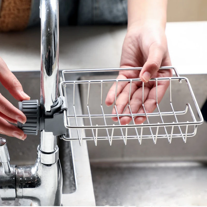 Estante para grifo de cocina, fregadero de acero inoxidable para el hogar, estante de almacenamiento colgante, soporte para grifo, Clip para paño de baño, estante de drenaje